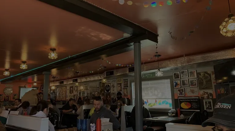 Always super nice service from the waitress. They are always busy, because they are great at what they do and the prices are cheap. The portions are large and the food is always served fresh and hot. The menu is diverse and has something for everyone. Parking may be hard to find a spot but don't fret, it's worth it. The interior wall is super cool and always fun to check out.