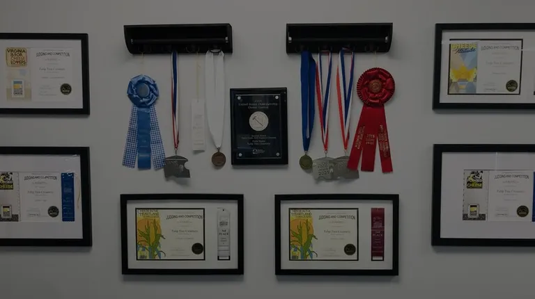 four framed certificates on a wall