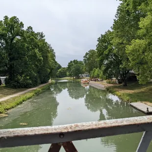 The "Delphi" Canal Boat approaching the boarding dock.
