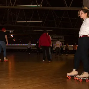 Large floor, great prices for admittance, snacks, and skate rental if you need to rent skates. Came on $2 Tuesday and there was a good mixed crowd. Some kids on the skate mates stumbling around but not too many where you can't skate easily. Floor was easy to navigate even with all the kids. Had a great time, looking forward to checking out an 18+ skate session sometime!