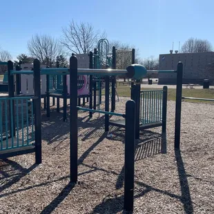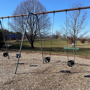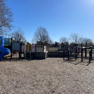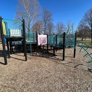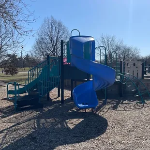 From an adult's perspective, this park is OK. My adult eyes see all the things that could be fixed: the litter that needs to be picked up, the picnic tables that could be repaired, the grass that needs a good mowing. But my kid keeps asking to come back here, so I'm thinking I should write this review from a kid's perspective.The playground is fun and is just the right height to climb up and jump down without hurting yourself. There are three slides: a twisty slide, a tunnel slide and a double slide. There are also lots of swings, monkey bars and things to balance on. The ground is covered with wood chips -- no sand here, unfortunately.I'm sure that star of the park in the summer is the huge water park and swimming pool just off the playground. We visited during the off season, so it was closed, but it looked fun!There's also a big basketball court that was getting a lot of use when we were there.