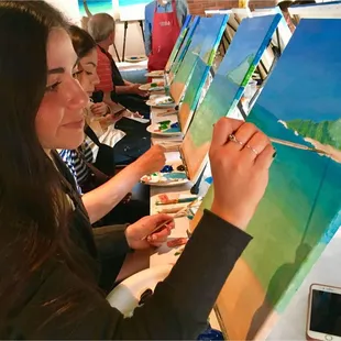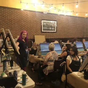 I just did my first sip and paint class and I loved it. I joined with my boyfriend for the couple painting and i cannot wait to do another one- alone, with friends, and my boyfriend again. When we arrived the instructor had set up everything for us and it was all ready to go. Our class was at Pivot Bar and Balcony at Hyatt Place (downtown ). As we painted we enjoyed some drinks. It was step-by-step class and was easy to follow. Instructor was so kind and helped us a lot too. Definitely a fun activity and I recommend it to everyone. Class lasted about 2.5 hours.