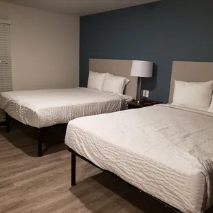 Beds were comfortable, had to push them back on the frame, coffee maker 50.00 extra purchase from desk, charged to exchange towels (linen charge), WiFi snail slow, don't expect to stream video at near 6 megawhatevers, yep, 6megawhatevers even for the 13.00 a week charge ( three devices max, no switching devices either), you have to argue "male general manager"for a refund if you leave earlier than expected. Strobe light smoke detector of bed. Female general manager (weekends) owns customer service experience and attempts have to return customers. Up to 4 rolls of toilet paper allowed per week, buy more if needed. Hospitality suffers here...