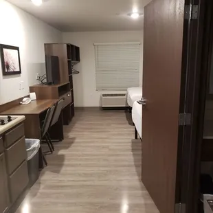 Do not book a room here unless your ok with hollow walls and can hear everything around you from the rooms above and next to you for example children running around upstairs, the room next door having set at 2 in the morning when your trying to sleep and their bed banging the wall back and forth. The kitchen does not have pots and pans nor silverware, you can purchase them at the front desk for 30 bucks but they don't have any to purchase. No coffee maker. The hallways smell like marijuana. They don't change towels unless you walk to the front desk with your dirty towel to request new ones. So I would definitely not recommend this hotel for anyone trying to have a nice comfortable stay. if your trying to get high, have sex or just have a cheap place to live for some time then it may work for you.