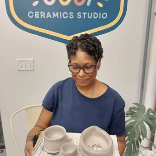 WOW, what a cool place that's tucked away in a small neighborhood to let your pottery talents come alive. I had such an amazing time last night learning how to create pottery. This was my very first time doing this, and instructor Tracee Ellis was absolutely OUTSTANDING!!!! She taught 8 of us, some first-timers, others had some experience, but she made getting messy a dream come true for me. I'm so glad my daughter in law gifted me this experience as a Christmas gift last year. The classes fill up super quick, but man, was this truly worth the wait!!!! Thank you, Yellow Door Ceramic Studio and Tracee Ellis, for an incredible way to end the work week and begin the weekend. #potteryrocks