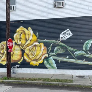 This is a simple piece. It is just a mural of three yellow roses, painted on the side of the old Nellie's Corner Store, which is closed. It was painted by Jules Muck aka Muckrock, a California based graffiti artist with a lot of work spread across Indy.It is a basic mural that does not have any meaning that i know of and is primarily intended to beautify the declining neighborhood that it is in. It is definitely not my favorite mural of Muck.There is lots of free street parking available to for you to get out and check out the mural. However, it is not a very long stop and you probably could accomplish what you want to in the comfort of your vehicle. So, as I have mentioned, it is best to plan out stops at many of the other wonderful murals in the area to best maximize your time.