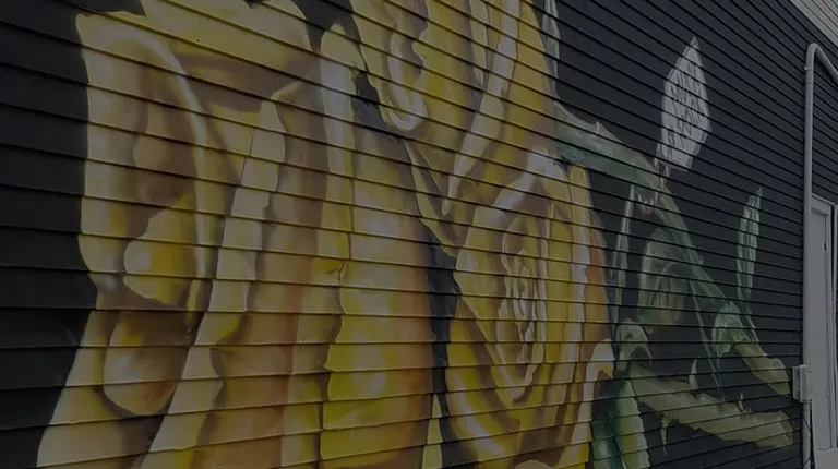 As part of a short tour through Indy (Aug '19), international muralist/artist Jules "MuckRock" Muck took time to visit the Old Southside to add a wall of color. On the west wall of the now closed Nellie's Corner Store, Muck transformed a blank wall into a bouquet of yellow roses on a black background that covers the entire length of the building. In an area of town that has been slow to ride the wave of revitalization, things are happening and this mural brings hope for a neighborhood that has a great location, but has been cut off from downtown by the interstate. Fun Fact: Across Palmer Street is one of the condos that was renovated by local television celebs "Two Chicks and a Hammer" who star on the HGTV series "Good Bones".Review #2878
