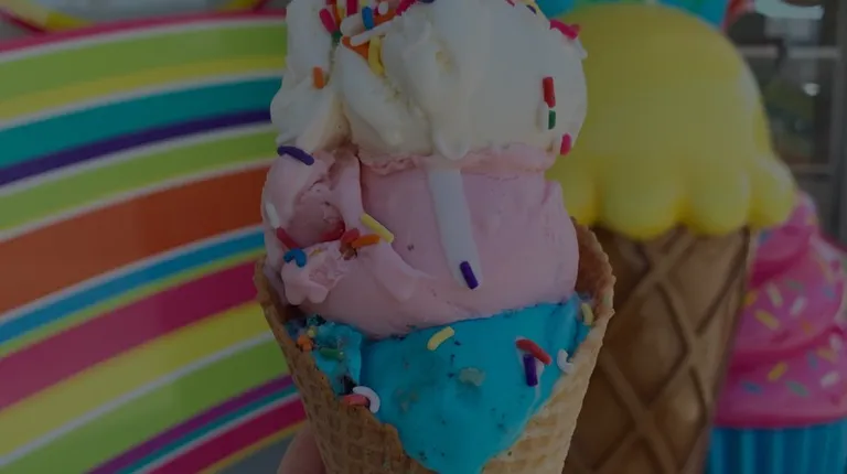 Triple scoop: blood orange sorbet, pineapple sorbet, & cotton candy ice cream!