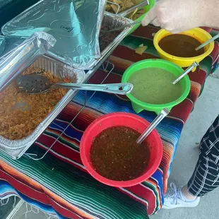 Variety of Salsa's and Cucumber Water refreshing