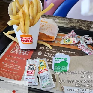 tldr: In the long run, not worth going to cuz health is important.Likes:- Good location; easy to come and go.- Polite workers and managers.- Love BK's collaboration with T-Mobile: got me a free whopper! And a few crown coins.- I enjoy the simple fries and a few of the nuggets.Dislikes:- A panhandler was "camping" by the drive-thru.- They didn't have applesauce, even though the mobile app let me order it. Bummer. Either they didn't have cuz no one eats it, or everyone eats it. Lol Healthy choices need to be more accessible.- So I asked what we can sub for the applesauce. They said nuggets, so I said ok. Turns out, I would have too many nuggets that day. Gets boring eating too much of one thing. Fruits would rly help to replenish yourself and to down all that dry food, fat, and salt.- They didn't have honey mustard sauce, even though app also let me order it. Again, either cuz everyone eats it, or no one does lol. The app should stay updated on these things.- The kicker. Getting food from here often makes me have to go #2 3-4hr later. Next time I'll try the next closest BK to check if it's a common tendency of BK's.10/26/21 What I ordered:$1 value fries1.29 4pc nuggets, honey mustard (which they didn't have but the app didn't say so. subbed with sweet&sour)1.49 applesauce (they also DIDN'T have. The app also didn't say.)0 free whopper (Thanks T-Mobile Tuesdays!)+ 0.35 tax =$4.13
