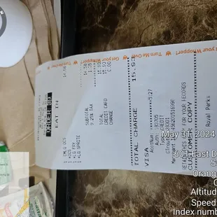 a receipt for a take out