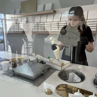 Everything here went great from the samples to the presentation of the cookies and the customer service! A great place to go after pizza next door!