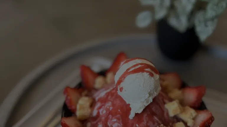 A very cute spot for a sweet treat! Came in on a Saturday in the afternoon and there was no wait. I love bingsoo but what I really love is that this place has small portions so me and my friend were able to each get a different flavor and share! We got the strawberry matcha and the caramel & biscoff! Both flavors were good but the strawberry matcha was definitely more refreshing and I love that they didn't skimp on strawberries! I did really like the coffee jelly that came with the biscoff one though The interior is calm and cutely decorated
