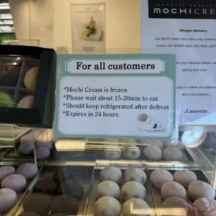 The Mochi Cream assortment of flavors are unique and they're a great dessert on a hot day. Colorful and delicious, making them a good fresh food gift or as a treat for yourself. They're served frozen so you'll need to give it about 5-10 minutes to get softer before eating.