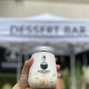 I loveeeeeee their pudding. God, it's so good. My husband is also a huge, huge fan. This stuff is delicious, and they use very basic ingredients to make this dessert.I'm not even a big fan of coconut in general, but I love their pudding. It's a tasty coconut pudding that truly does justice to the flavor of the fruit. It's sweet, but not overwhelmingly so and doesn't taste artificial. The only drawback is the price point is pretty high, but it's definitely worth it. I tried this way back at an OC night market a while back, and have seen them in many restaurants.I've only tried the original and peach, but really looking forward to trying the coffee and matcha flavored ones in the future. Vastly prefer the original to the one with diced peaches. I thought it'd be fresh, tangy peach cubes, but my husband and I thought they tasted pretty bad. They don't exactly tasted canned or anything, more like a dense sugary gummy almost? Won't be getting this particular flavor again.I visited their flagship store and the lady at the front gave us some samples! She was nice and quick with my order.The store itself is pretty small, basically just a window where you can make your order inside a larger building, but it's clean and bright. Suits its purpose.This is definitely an item I consider a splurge, but a worthy splurge. Will be back to try their other flavors!