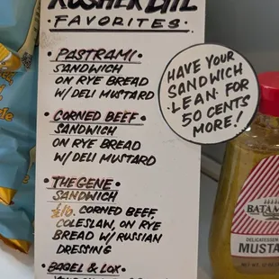 The pastrami and the corned beef are both very good and you can get a lean version for a little more money. The bread is great and the sides are typical deli style good.