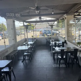 This is the view of the back of the restaurant from the parking lot. The entrance is around the patio on the other side of the building.
