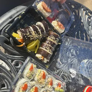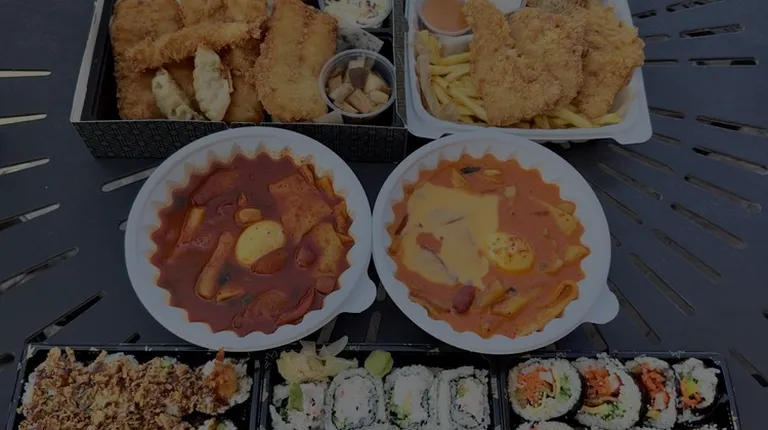 What a delicious place! I love the food selection here, which includes Tteokbokki, udon soup, ramen, kimbap, musubi, as well as California rolls and shrimp rolls. We decided to try the original kimbap, shrimp roll, and musubi for my husband. The service is great, and we received our food fairly quickly. Although the area is smaller, there are a few tables inside and plenty of outdoor seating.