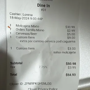 Te cobran hasta por la sonrisa -pedí molcajete me cobró extra por tortillas a mano sin decir que eran extra, el molcajete no traía chorizo, le pedí más salsa de molcajete me cobró $3 (si estoy pagando $30 por el plato, como justifican eso más $16 por una cerveza, la verdad por eso tenía 2 años sin ir, los camareros ni los limpian la calidad bajo de masiado, que lástima antes iba fácil 3 veces a la semana, basura el dueño le vale, también el curtido hahaha esa pususas no saben a nada y con ese nombre uno piensa que por lo menos saben a hacer pupusas, el servicio está bien pero la muchacha no te dice que te va a cobrar extra, (creo que están a costumbrados a puro gardenero naco borrachos que gastan todo su cheque ahí nomás para quedar bien con la mesera, porque rentan en una sala como un chiquero....!!! Terrible I can't believe they fell off this much!!!