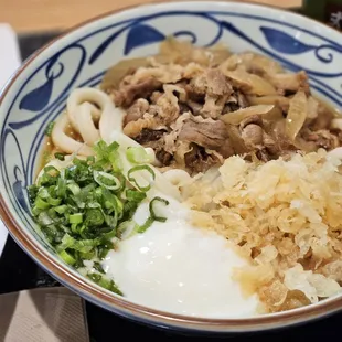 Curry nikutama - udon bouncy and chewy. curry broth had a subtle flavor, though it was a bit on the watered-down side and not very salty. generous beef toppings were tender, with a slight sweetness. poached egg added a creamy richness that tied everything together.The space is a bit limited, with tables positioned closely together, making it a challenge to squeeze through while holding your udon. However, the staff is attentive and ready to assist, ensuring you're comfortable as you navigate to your seat. Shop located in DJ which is always packed - extra parking available in nearby parking structure.