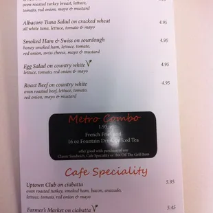 Cafe menu