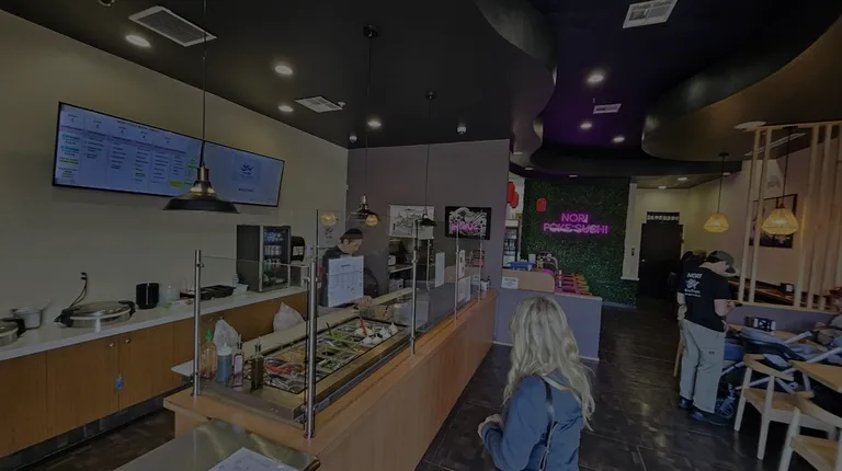 1. The rolls were assembled well with good cuts of fish!2. The spot has fun casual vibes where you can either eat poke bowls or sit down to eat sushi rolls and handrolls at a counter!3. There are only indoor seatings!4. The staff were friendly, and we had a good conversation with the sushi chef!5. Parking lot is huge, but it can get crowded depending on time and day!Note: There is a bathroom available for customers!Photo: Handrolls, Tempura Shrimps, and Nori Signature Roll