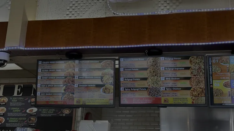 First off the chicken here is pretty good! The flavors are great but I'm always a fan of the original. Original is always crispy and juicy. I've gotten the popcorn chicken here but I would suggest to sticking to the real wings/drumsticks etc. I also had my first experience with korean pizza and I enjoyed it. It was sweet and tasty. I do think that style of pizza isn't for everyone though so keep that in mind! The sweet potato pizza was overall good but I do wish it had a bit more sausage on it. Service is pretty quick and if you ever need suggestions ask him. It's located in the corner of HMart and the food court doesn't get too busy so it's usually a nice place to sit down and eat.