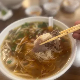 I would be one of the first people in line that are from the Bay Area that thinks Bay Area food is hella mid right now and on the decline.But if this is supposedly one of the best pho places in OC at the moment (the other one being Pho 79 apparently).................then I must be mistaken about Bay Area food being mid then lolThis was not great. They play videos on their TV demonstrating how they apparently boil dozens of pieces of beef in these large vats, only for it to taste like shit you could conjure up with some Trader Joe's beef bone broth and a few dollops of Better than Bouillon beef broth.When it comes to trying new pho places, the pho dat biet is my choice of pho for litmus testing a pho restaurant, in a similar way that Jacques Pépin asks chefs to make an omelette as a litmus test.Upon looking at the menu, I couldn't seem to find the pho dat biet, so I had to ask the waiter if they made it, which they did, but the conversation went downhill after that:Me: "Do you guys make pho dat biet?"Them: "Yes"Me: "What's in it?" (every place has a different pho dat biet recipe with different meats and toppings)Them: "Uhhh *says something I couldn't understand*"Me: ".......Okay how much is it?"Them: "The same"Me: "The same? Same as what?"Them: "As the other pho"Me: "But there are different prices for different kinds of pho on your menu *I point to all of them*"Them: "Yeah but it's the same"At this point I have him physically point to a price on the menu and he pointed to the one that was $14.50, which apparently wasn't the price because I was charged something closer to $18 instead at checkout lolI will say it's cool that this location is at SCP in a cool two story food hall area (with a Bruxie) and opened pretty late (11pm). They also have this area that mimics the Japanese ramen place Ichiran where they have solo booths for eating and a curtain where the chefs bring you your bowl of ramen from the kitchen.Back to the pho: It was mid, very shallow tasting, toppings weren't great.Maybe I didn't go to the main location or I just came at an off time, but no way am I coming back to this one. I'll probably have to try their other location(s) and/or try Pho 79 and hope it's much better.OC, if this is your best pho lol come check out the Bay Area instead.