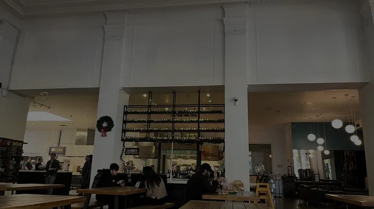 a restaurant with tables and benches
