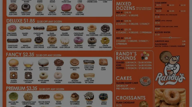 Terrible oily donuts. Tried the crondy (croissant donut). Took 3 bites and exchanged it for a plain sugar donut. Took one bite and gave up. The oil in the fryer is too old and I think too cold so both donuts were extra oily and sour/bitter. Also had the ham cheese croissant which was also extra greasy but tasted good at least. Bottom line is that Randy's is already pricier and for as bad as it was it's a definite do not go.