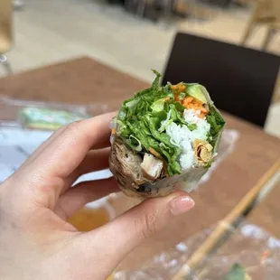 We saw that the brea mall had a spring roll hot spot in the food court. There was a line but they were very fast! We opted for the bulgogi, shrimp and lemongrass spring rolls. We added on the goddess dip. Wow! Everything good felicitous but the bulgogi with the goddess dip was the best! The owner was quick to spark up a convo with us. Would come back!