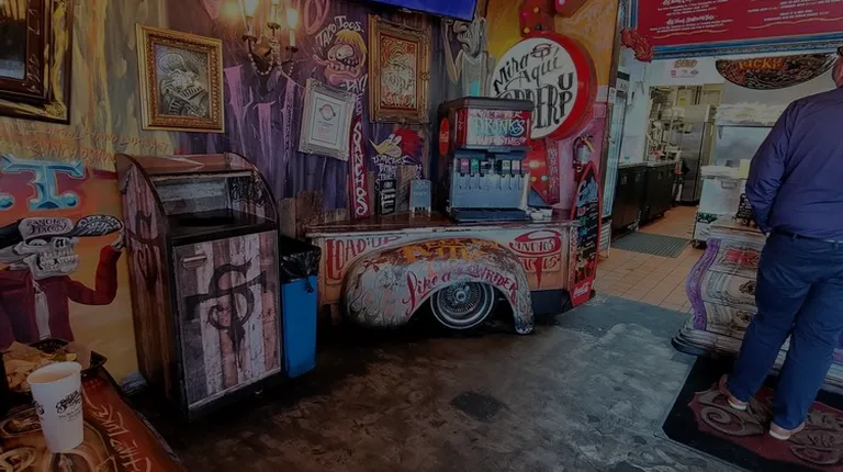 If you want some really good tacos I highly recommend Santo's tacos! I have only had the tacos so far but the burritos look really good. It's a casual restaurant where you order at the register and then they bring you your food. They do have beer and margaritas as shown by the fabulous monkey! (Photo) the interiors are spectacular. It's a chaotic graffiti vibe, but fits this restaurant to a T. Just FYI, there are multiple Sancho's tacos and all are slightly different in decor.