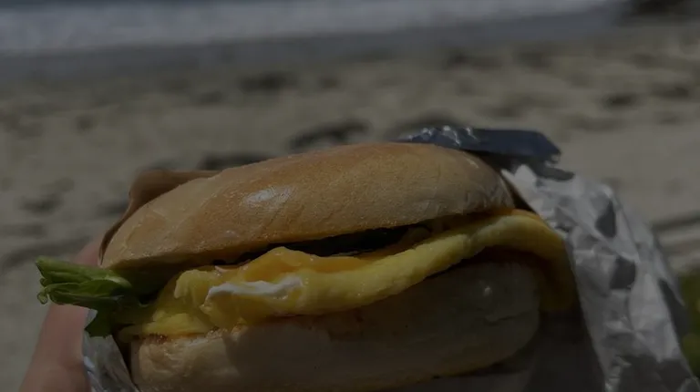 Come here for the bagel sandwiches! They're exactly what you would want from a breakfast bagel sandwhich. And perfect to take and eat on the beachI got an iced matcha from here but sadly, threw it away because it was way too sweet. (The one in the photo is from another place nearby).