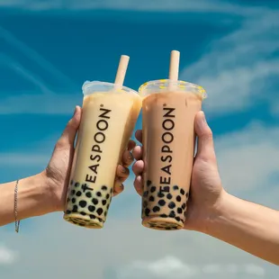 House Milk Tea & Caramel Cream, both with Brown Sugar Boba