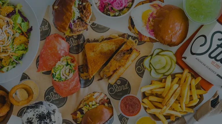 I love The Stand and have dined at a few of their locations. This is most definitely the smallest one I've been to. Although located in a large plaza where there is plenty of parking, the interior is cramped compared to other locations.I visited on a Saturday around 4pm and the place was fairly quiet. Only two guys were working, one at the register and the other at the grill. I ordered a Stand Burger, cooked medium, along with a regular order of fries and a cookies and cream milkshake. The friendly fellow taking the order also offered some complimentary pickles and a cup for water.As my food was delivered to my table, a very large group of young adults from the nearby LDS church walked in. The place suddenly had a long line and was about to become packed. The two worker-guys didn't panic and worked as quickly as possible yet provided good service, one by one. I started to eat but realized my milkshake hadn't been delivered. As I looked up, I saw the fellow at the register dash out the front door and return with a milkshake in his hand which he took with him back to the front counter and continued to help the long line of hungry youth. I quickly figured out that a delivery driver had come in to pick up an order and also walked out with my shake which had been set out but not yet brought to my table. I walked up to the front counter, grabbed the milkshake, and asked the now frantic guy at the register if it was mine and he told me "yes". Not sure why it wasn't brought to me...I just hoped he saved it before the delivery driver sucked a few sips through the straw!The burger was superb. The thick, juicy beef patty was obviously top-notch quality beef. Betweeen the delicious brioche bun the lettuce and tomato were fresh and the pickles and sauce added to a perfect burger. Their fries were excellent and the milkshake was as good as a milkshake can be. Although my experience was a bit odd I still enjoyed my meal very much.