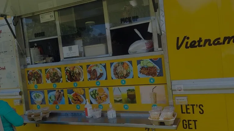 The yellow food truck located next to Westminster Park. It's hidden down the street. It reminded of Vietnam with the tables and stools outside to eat on. I also really like that they open late until 11 PM. We came on a Monday around 10:30 PM and they were sold out of a lot of things, so come earlier. We ordered the Com Tam Plate and the Fresh Crab Soup. The food was so reasonably priced and Com Tam Suon Plate was delicious. The pork chop was flavorful and moist. The Fresh Crab Soup came with a century egg and was filled with quail eggs/ crab and shrimp. They even give you a free side soup and sweet herbal tea. Definitely would come back for a late night dinner!