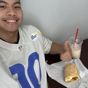 Yes donuts have an amazing bacon burrito that I didn't expect to even be on the menu. The protein shake that I ordered as well made it a lethal combo that helped me feel rejuvenated for the rest of the day. Let's go rams
