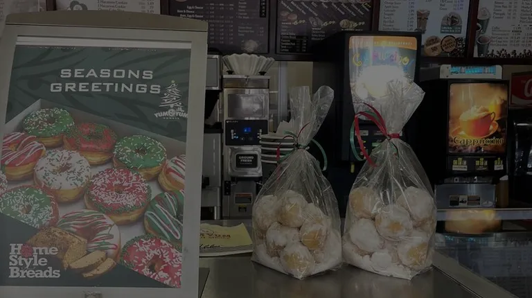 Walking into YumYum Donuts off Tustin in Santa Ana is located in a quaint shopping center off the 22 freeway, is a pleasant experience offered 24 hours around the clock. Aricela was my donut hostess on this fine afternoon, she was lovely, smiling as the aroma of sweet dough filled my lungs. It's dark painted oak is reminiscent of your favorite donut shoppe as a child in the streets of Anaheim. Reminds me of skateboarding in the neighborhood and taking a break for sugar and soda refreshment. Aricela brought that experience and memory to life, with a dozen of fine mini donuts frosted with holiday cheer. While you're here at this center you can stop and see Sal for some tacos or you can grab your kids some MTG booster packs at Card Game Coliseum whenever they are open, it's rare. We'll be back to see Aricela and the Yum Yum Donut Jam crew for some more Holiday themed painted treats with the groms soon because they can't stop talking about them!!