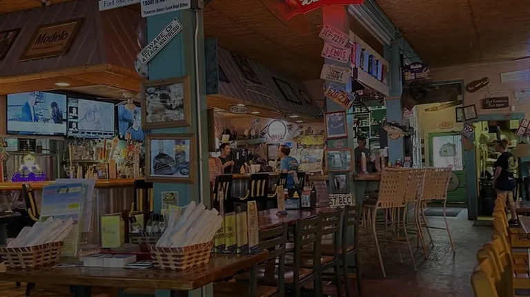 This is a fun lakeside restaurant. The inside has a vacation vibe. The ceiling is made of woven bamboo and their are painted footprints on the floor. There were no clean tables outside, and they had live music. Service was prompt and I saw several servers. The 4 of us loved our food. I had a patty melt and corn fritters. It was so amazing. I seriously thought it was one of the best meals I've had this year. Prices were super reasonable as well. They don't have any ciders.