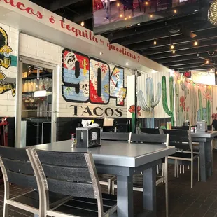 The outside seating is ideal for large parties and a good way to enjoy the summer weather. The location was quite busy but the service was very pleasant. We tried the 904 fries, asada tacos and steak quesadillas . The beans and rice were my favorite.