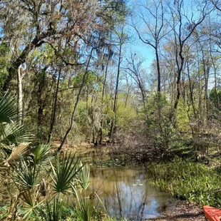 I was waiting for a togo order from a restaurant on Baymeadows and Old Kings so I found this place to go for a walk while waiting. Cool little trail system that starts in a swampy area that slopes up into a little upland ridge to the east. I think the parking area is a city park but I don't think the trail system is maintained by the city. Instead a Jacksonville Track Club appears to be the steward. I think this must be a track and field organization. It's not a huge place for a serious run but it makes for a quick walk. There is even a boardwalk along the headwaters of Goodby's Creek and a canoe and kayak launch.