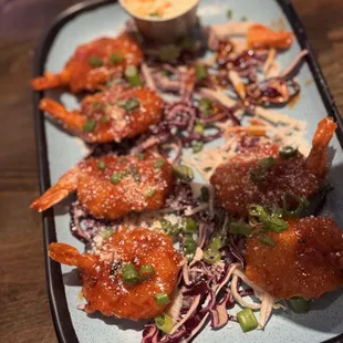 Service is phenomenal and helpful with answering questions about the menu and recommendations. The food is really good. The shrimp app is tasty and the taco salad with lamb is huge! Drinks are interesting takes with neon colors for fun.