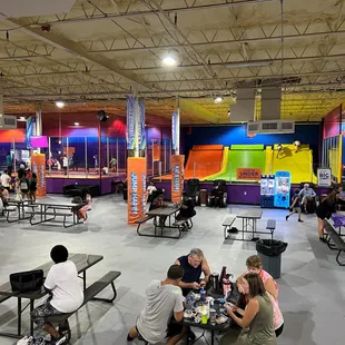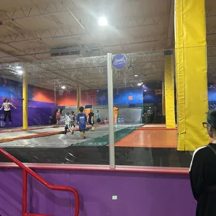 Not over crowded where the kids are waiting to jump. Dodgeball and basketball section. Also a VR jumping area which was really cool to watch. Socks available for purchase.