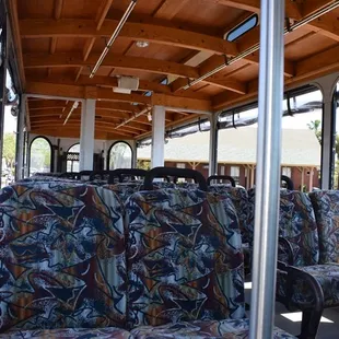 Interior of one trolley, you can see our Victorian village in the background.