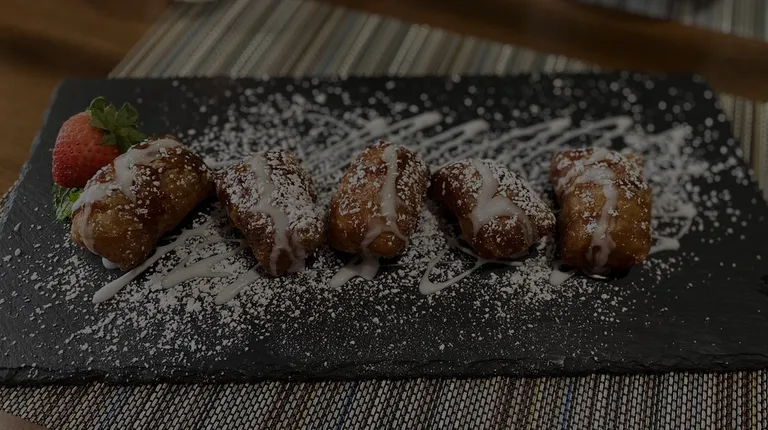 Chicken & Beignets - hot honey chicken skewer, powdered beignets