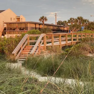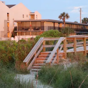 Right on the beach. Clean, comfortable. Had a double queen with kitchen facing ocean. Great spot. Chairs in front of your room to sit and watch sunrise. Quiet. Would stay again.