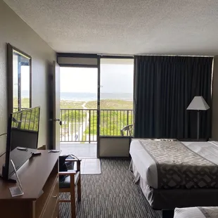 We had one of two upstairs oceanfront rooms, it was a beautiful view! Nice motel, very friendly staff, nice and clean area. Very nice pool, easy short walk to the beach, it's right in the beach, no street to cross! Free coffee at the office in the morning. Great restaurant right across the street too. I highly recommend this place.