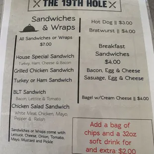 Was at the "19 Hole" Restaurant at the Bent Creek Golf Course today for a charity event. While there, we ordered some food from their clubhouse, and what a delight to have some fresh made sandwiches that were very flavorful. The chicken salad was loaded onto a bun with fresh lettuce and tomato. The chicken salad was lightly dressed with mayo, spices and relish. It was very tasty. The turkey wrap was well made, loaded with lots of fresh lettuce, tomatoes and meat, but way too much mustard (requested no mayo). Overall great place to have a quick, reasonably priced lunch.