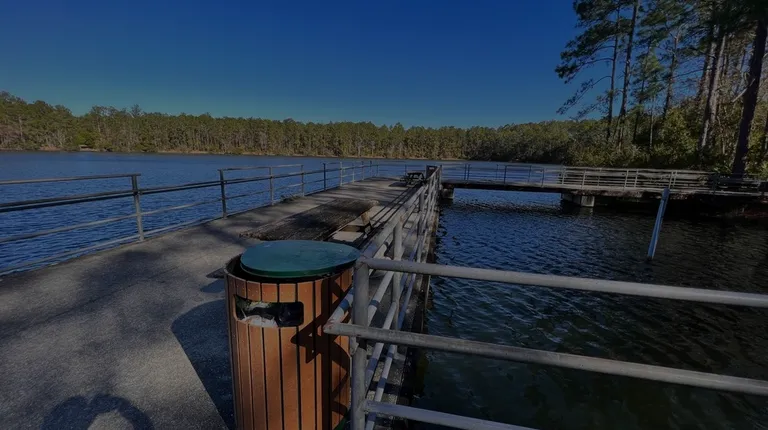 Bethesda Fish Management Area is located near the intersection of I-295 and Dunn Ave. Tucked back in an unassuming suburb, you'd never guess that a park this big was back there. My husband often goes to the lake to fish for bass and we have taken several hikes around the lake [I'm not a great fisherwoman], which takes about twenty minutes. It's got some nice scenery and is a nice way to spend time outdoors.There are several big docks for fishing with boardwalks connecting them. There are a lot of buildings surrounding the lake, and we have looked around for bathrooms many times, but haven't ever been able to find any. The buildings appear to be pavilions you could rent out for events and this would be a great place to host a birthday party, work party, or family reunion.Overall it is a beautiful park that never seems too crowded. I would recommend it for walking or jogging, or just catching a breeze off the water while enjoying a little sunshine.