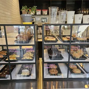 Pastry display and bottled drinks